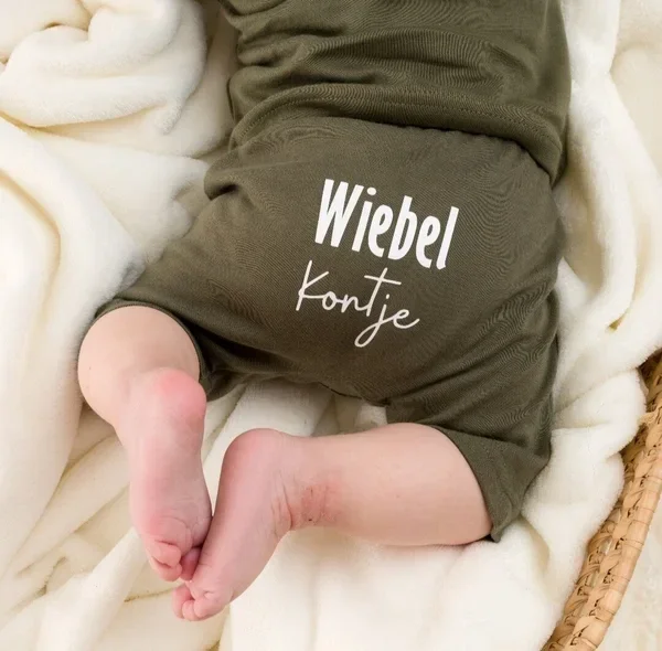 Super grappig kort broekje met op de achterkant van het broekje de opdruk wiebel kontje.