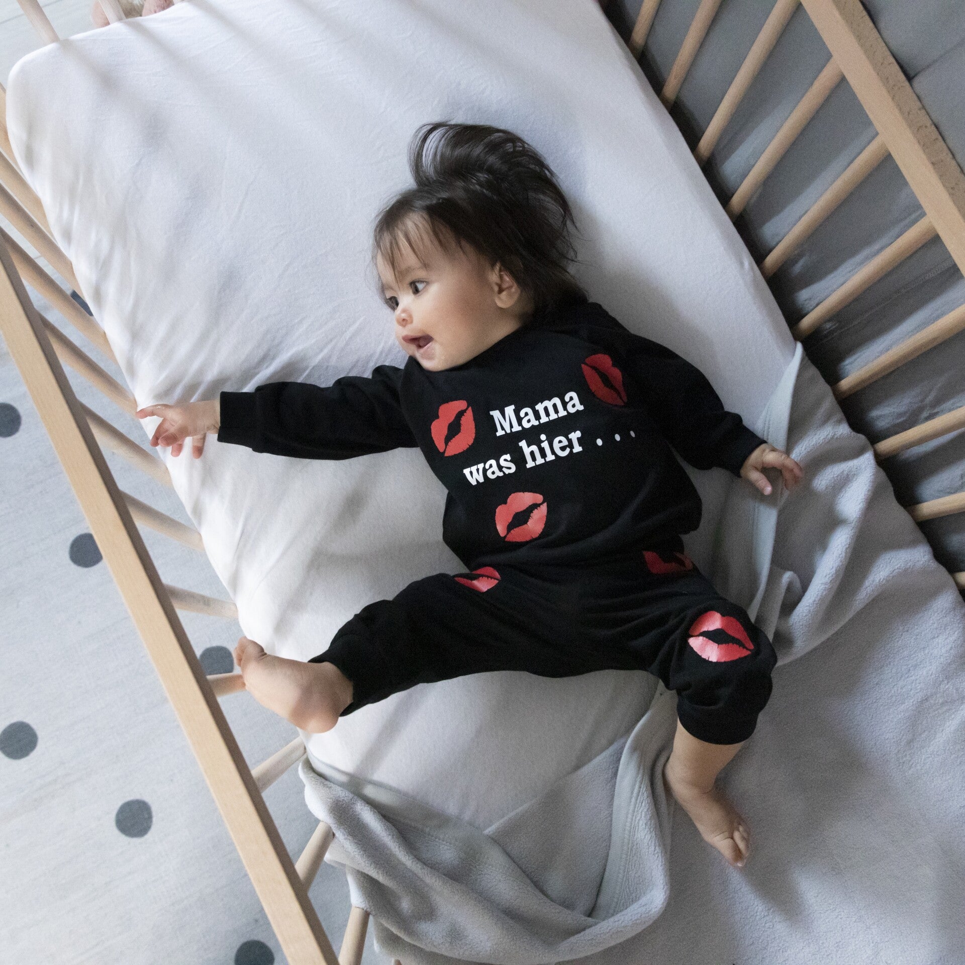 Schattige pyjama met kusjes en tekst mama was hier.